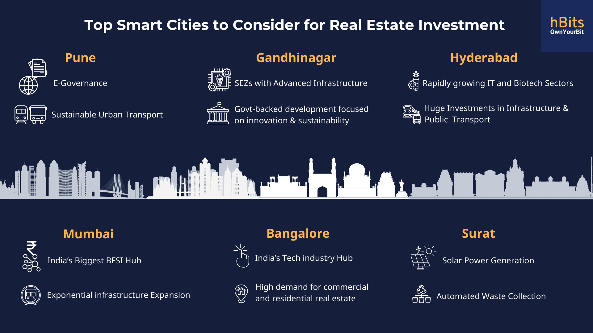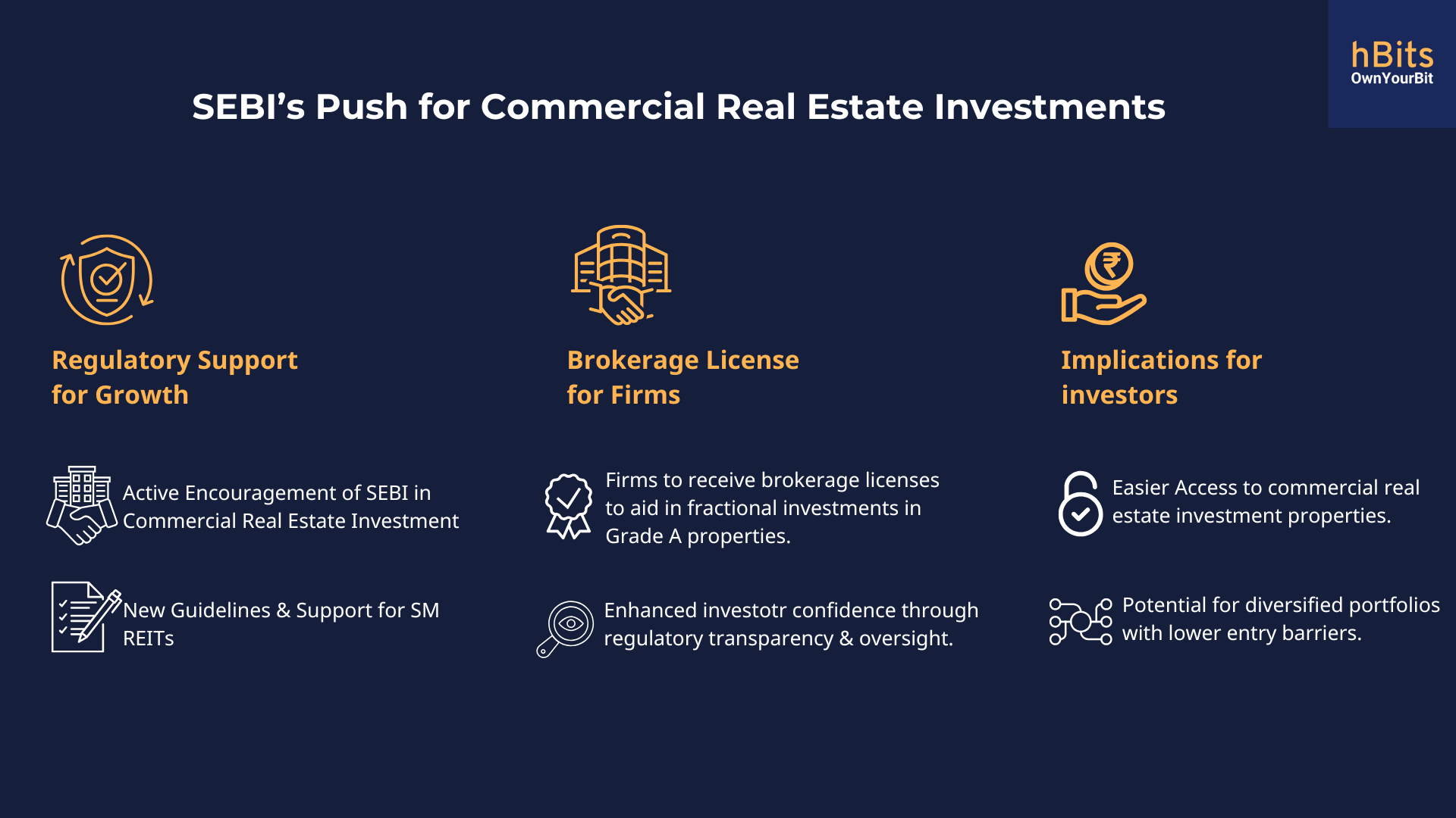 hBits is a commercial real estate platform that democratises real estate investment in India. It lets investors buy partial ownership in Grade A commercial assets Like IT parks, SEZs, offices, etc for a minimum outlay of only INR 10 lacs.